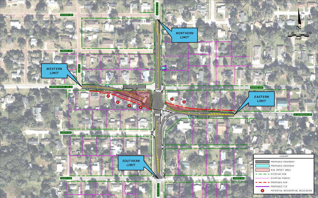 The purpose of this study was to identify and evaluate various alternatives for the CR 52/Meridian Avenue/21st Street/Suwanee Way/St. Joe Road intersection. The study compared the effects each alternative may have on the environment and the surrounding communities, as well as the traveling public. Replacing the existing T-Intersection with a four-leg intersection was be evaluated.