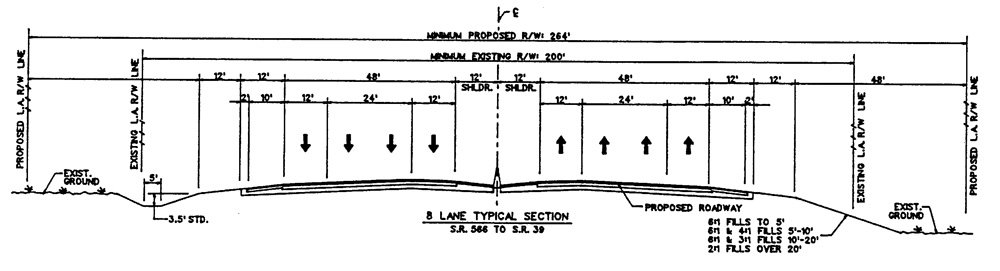 8 Lane Typical Section with Frontage Roads – SR 39 to County Line Rd.