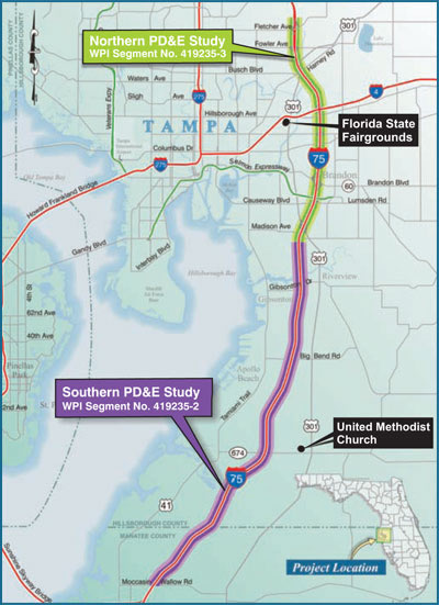The FDOT held the I-75 Alternatives Public Workshops on June 15, 2009 and June 17, 2009. To encourage your participation, the FDOT held these workshops on two evenings at two different locations. These meetings were located near the project limits and are shown below.