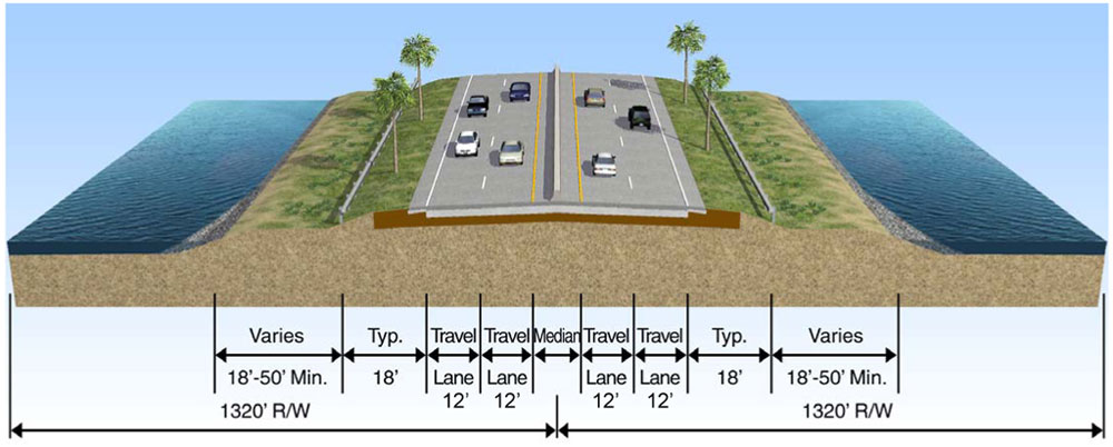 Typical Section No. 1 – Station 21+00 to Station 69+00
