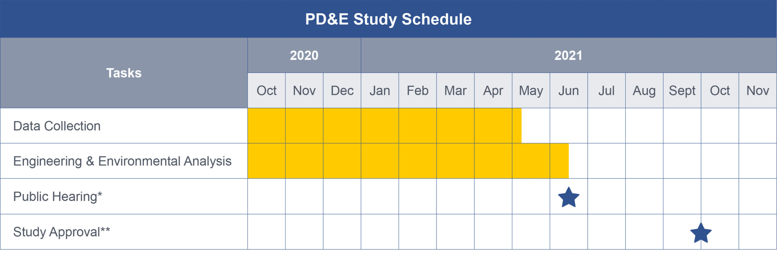*Public Hearing: June 24, 2021 ** Study Approval: September/October 2021